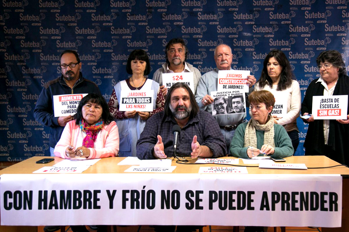 Por otro lado, además de denunciar la falta de gas y/o estufas sin funcionar, desde SUTEBA señalaron que el cupo de comedores escolares es insuficiente, como así también el monto destinado por estudiante a la ración diaria, de apenas 24 pesos. Al respecto, la secretaria general adjunta Silvia Almazán se refirió a la alarmante situación afirmando que apenas un tercio de la matrícula recibe el Servicio Alimentario Escolar.