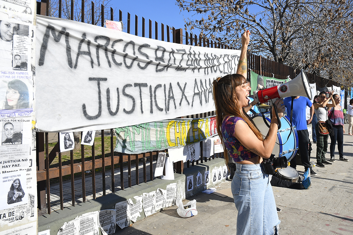 En la previa del veredicto, unas 100 personas entre familiares, amigos y organizaciones de derechos humanos realizaron una radio abierta en la puerta de los tribunales, donde colocaron carteles y banderas pidieron “Justicia por Anahí” y “libertad para Bazán”.