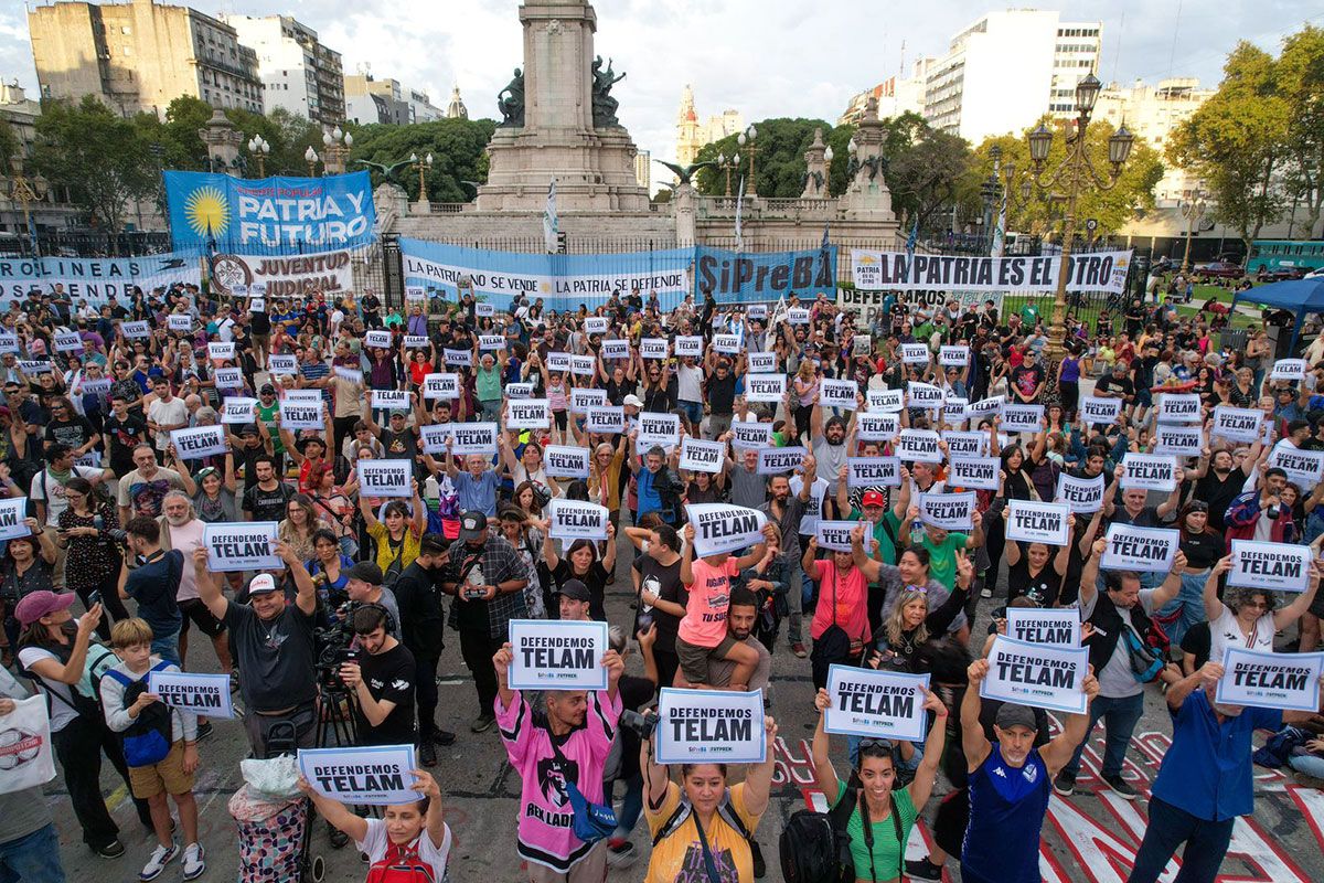 Cientos de personas entre público, feriantes y representantes de organizaciones sindicales participaron ayer, en la Plaza de los dos Congresos, del festival de los medios públicos, a 79 años de la creación de la agencia nacional de noticias y publicidad Télam, cuyos trabajadores mantienen un acampe frente a los dos edificios en defensa de las fuentes laborales.