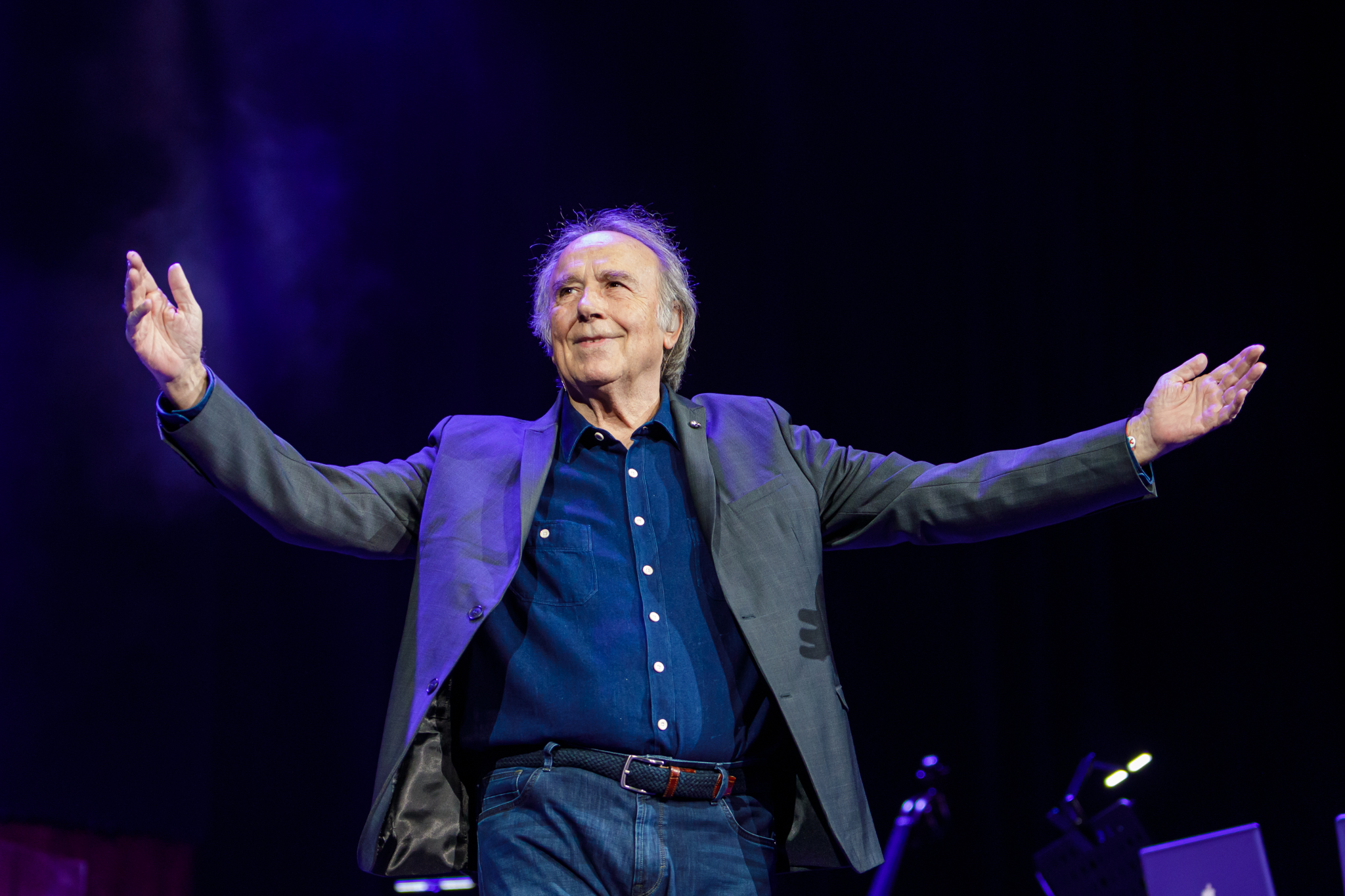 En un pasaje más intimista, solo con su guitarra, apenas iluminado, en catalán (aquella lengua que le valió la censura de un festival internacional en sus primeros años y que hoy regresa con las mismas diatribas por el independentismo), llegó la (tan) actual “Pare” (con “Padre, dime que la han hecho al río que ya no canta”): “La escribí hace cincuenta años y es extraño que yo la planteara en esa época porque hoy tiene una vigencia pasmosa con el cambio climático que, sabemos, afecta a todas las regiones del mundo con sequías, inundaciones, incendios forestales, el derretimiento de los trópicos”).