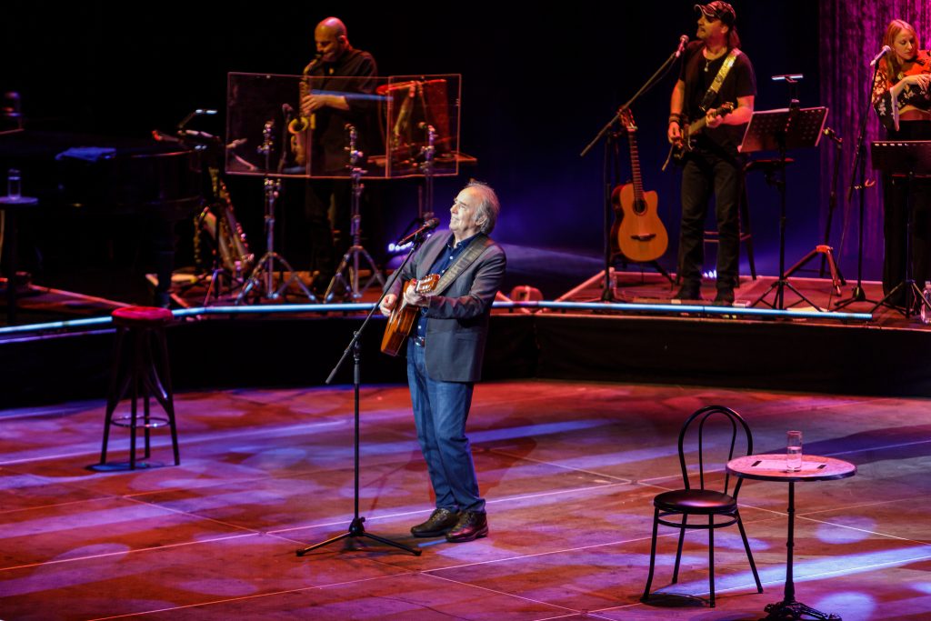 “No tengo ningún interés en irme, soy un agradecido por poder haberme dedicado tantos años a este oficio y vivir de la música por tanto tiempo. Tengo mucho tiempo compartido con este país, con ustedes, con sus predecesores y, también, con los que ya no están”, reconoció para recordar la primera música que escuchó de la Argentina, que eran los tangos de Carlos Gardel que su padre desgranaba en una radio a galena. “Pero mi deslumbramiento fue con el folklore, con Atahualpa Yupanqui, ese viejo cascarrabias y amoroso”.