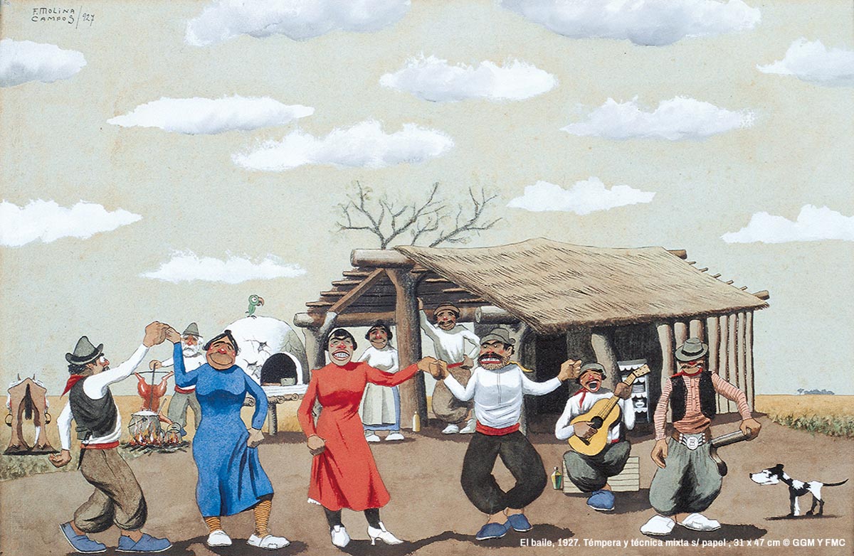 Y agrega: «Molina Campos. Pinturas para el pueblo está integrada por algunas de las más importantes obras pictóricas que tiene la colección como El payador, que es muy conocida, El Truco, El boliche del ombú, La zamba, El baile, muchas obras muy icónicas que cuando alguien las ve, las reconoce inmediatamente. Hay muchos jinetes y también muchas escenas de interior, paisajes de la pampa, cuentos nocturnos.”