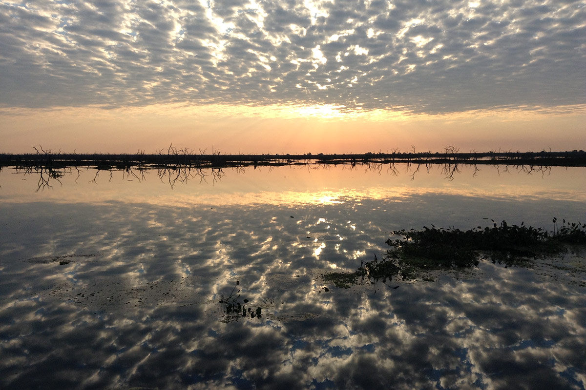 “Después del ñandú, es el ave más alta y de envergadura es como ver un cóndor andino con patas largas”, graficó Spagarino. “ Vuelve cada año al mismo nido, con la misma hembra donde criará unos 2 a 4 pichones por temporada”, dice el naturalista y recomienda visitar el bañado de junio a septiembre porque es justo el momento en que las aves vuelven, anidan y en primavera nacerán los pichones. Así, el ambiente se transforma con el agua que se aquieta y devuelve postales donde se confunde cuál es la superficie del agua que forma el bañado y cuál es el cielo. Un juego de espejos que integra un espectáculo silencioso e inolvidable.