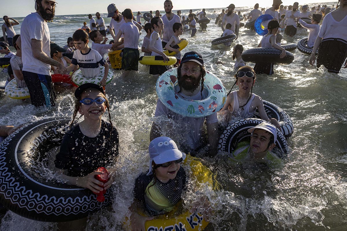 Judios ultra ortodoxos se bañan en una playa reservada solamente para hombres al Sur de Israel.