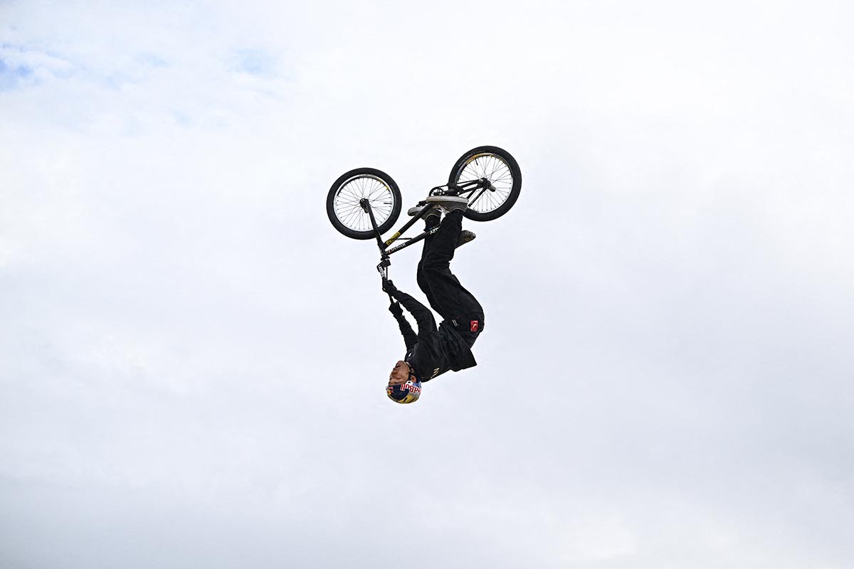 El japonés Rima Nakamura realiza un salto durante la final del campeonato mundial de BMX en Escocia.