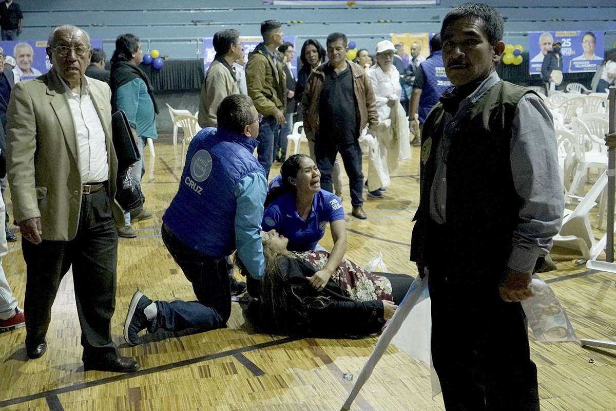 Una mujer herida de un disparo es asistida luego de un tiroteo en el cual resultó muerto el candidato presidencial Fernando Villavicencio en Ecuador.