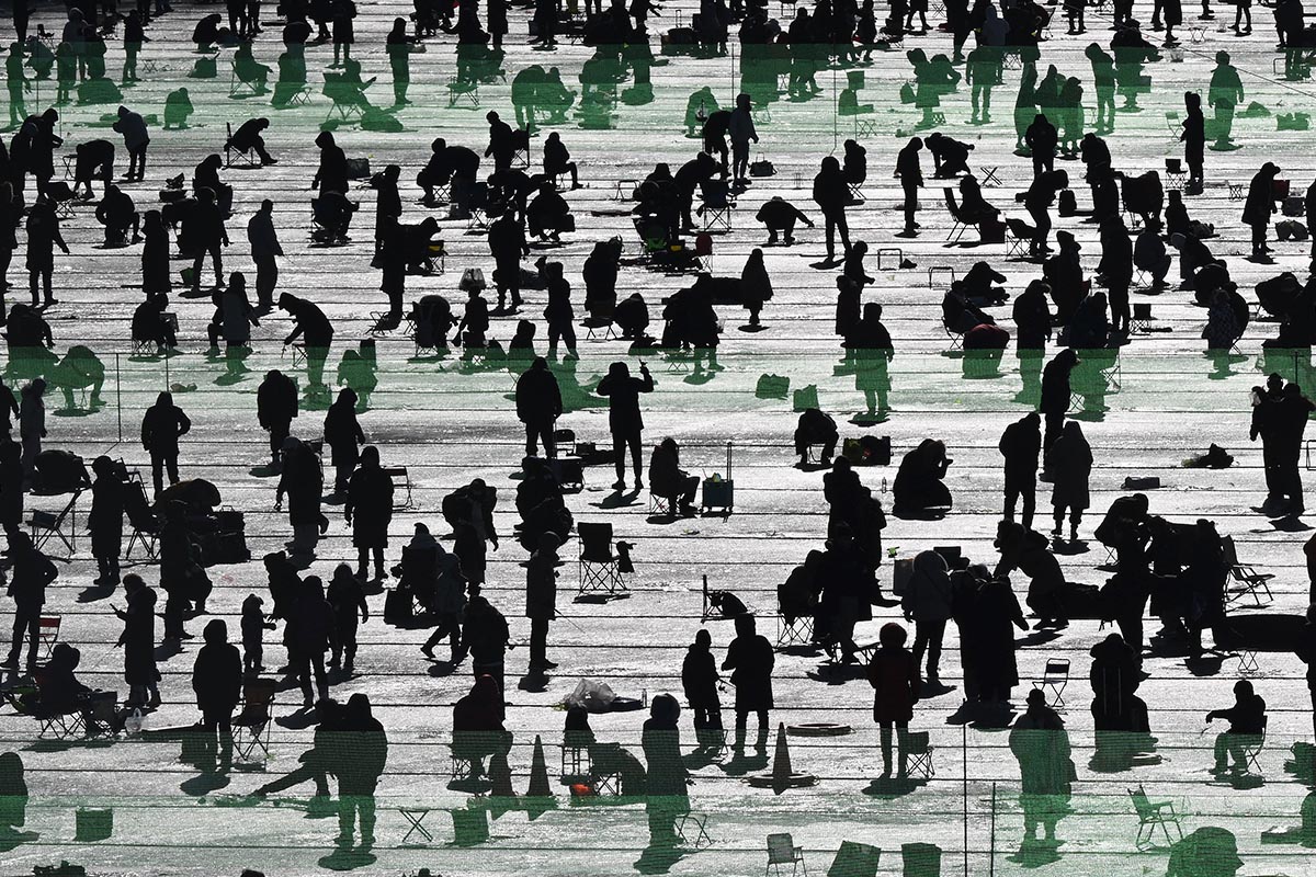 Festival de pesca a través de agujeros en el hielo en Corea del Sur.