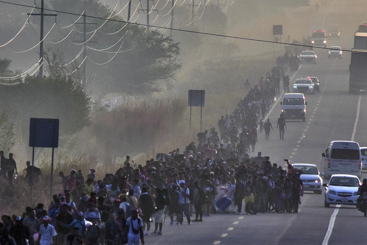 Migrantes toman parte en una caravana de protesta en la frontera entre México y Estados Unidos, luego de que se les rechazara los pedidos de tramitar la visa humanitaria.