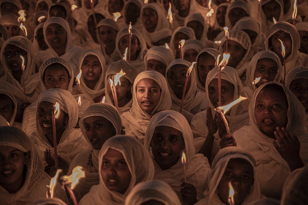 Mujeres etíopes ortodoxas rezan durante los festejos de Navidad, celebrados el dia 7 de Enero.