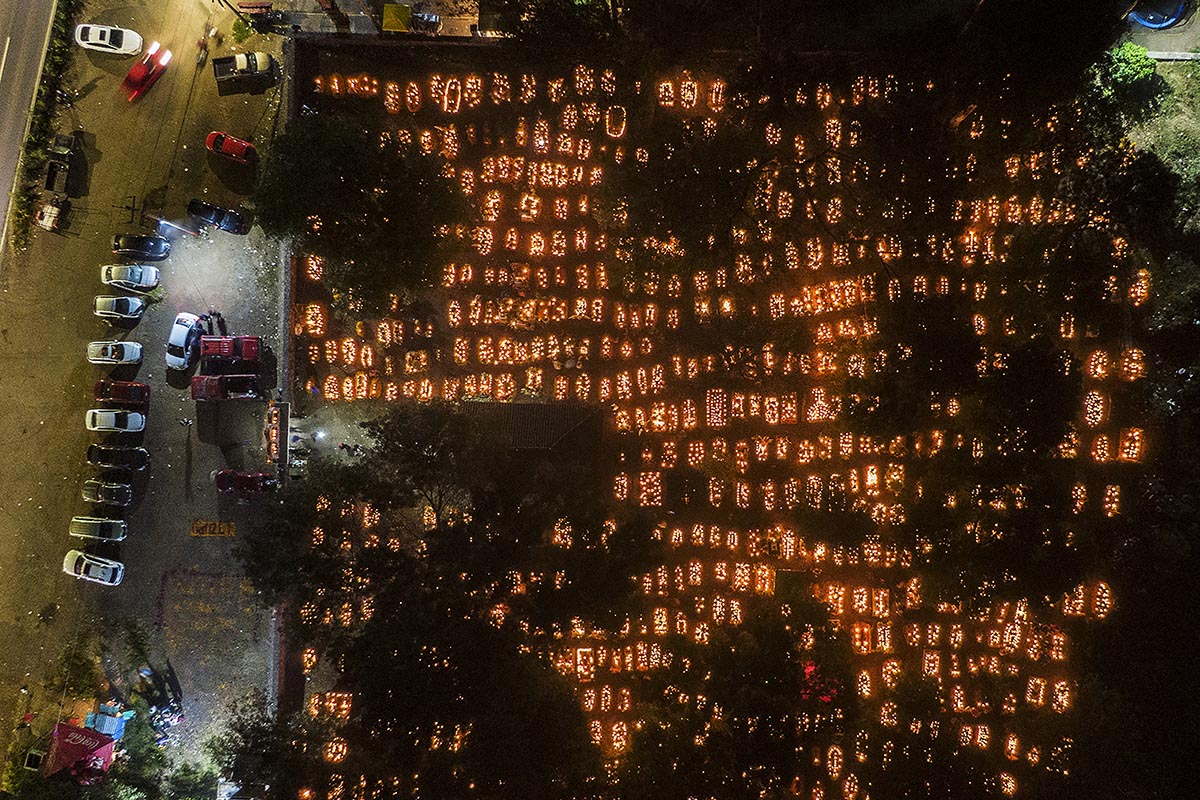 Vista aérea del cementerio en el estado de Michoacan durante la celebración del Dia de los Muertos.