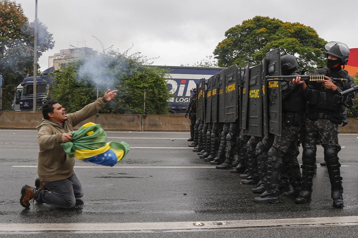 Policias antimotines desalojan una ruta de manifestantes bolsonaristas en la ciudad de San Pablo.