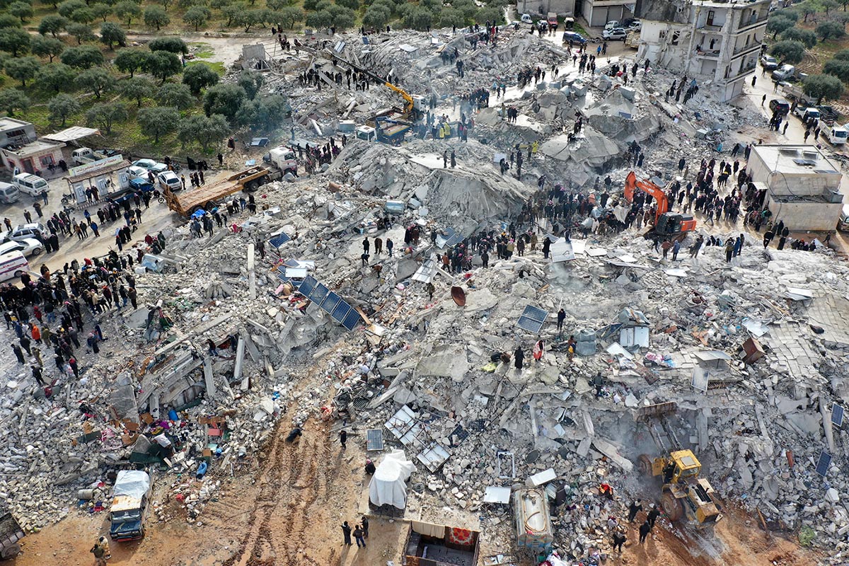 Vista aérea de la villa de Besnia en Siria, totalmente destruida por el terremoto.