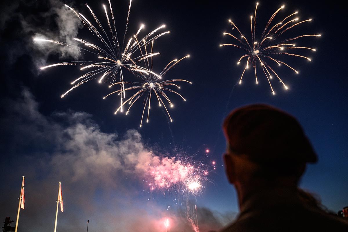 Jets de la Fuerza Aérea de Francia forman la bandera de su pais durante el aniversario del desembarco en Normandía, durante la Segunda Guerra Mundial.