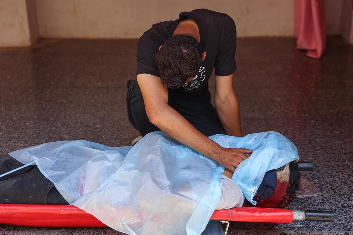 Un hombre palestino despide a su familiar, muerto durante bombardeos israelíes sobre Gaza.