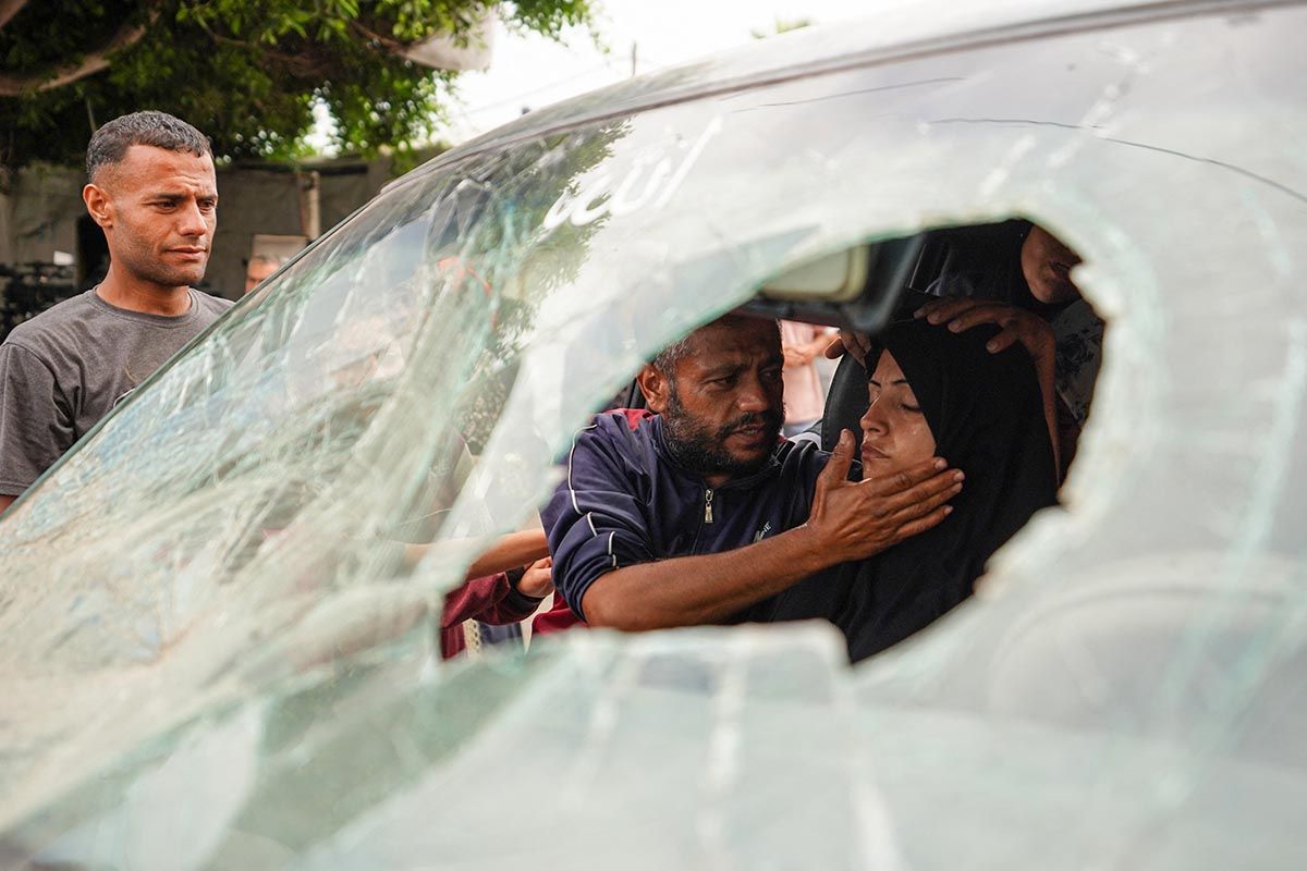 Una familia palestina llora a sus muertos, luego de bombardeos nocturnos israelíes.