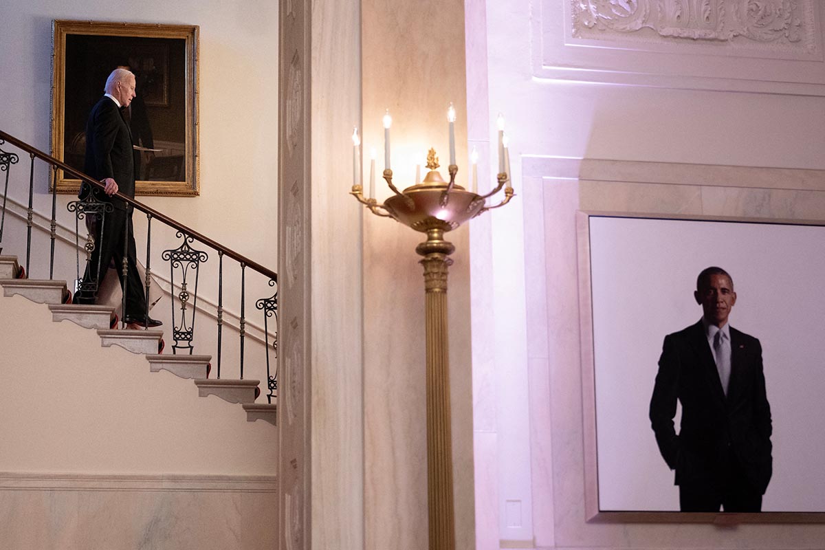 El presidente Joe Biden baja las escaleras en la Casa Blanca.