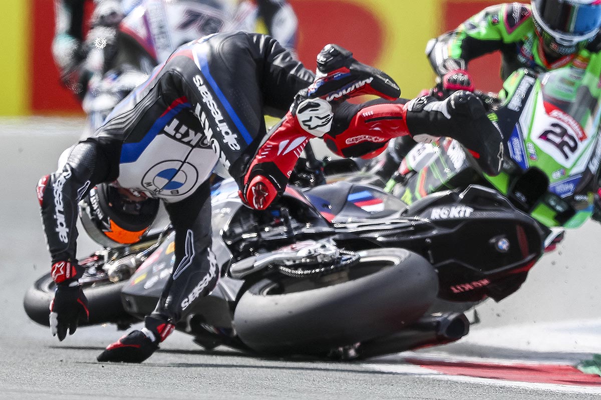 El piloto Michael van der Mark sale despedido de su moto durante un accidente en el Campeonato Mundial Supersport en Paises Bajos.