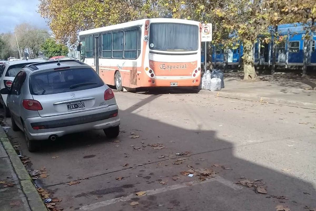 Sin disimulo alguno, los micros que trasladaron a los estatales hacia el Congreso, estacionaron a la vuelta del municipio, en Alem entre Italia y Belgrano al costado de la estación del tren San Martín.