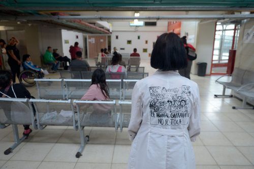 Emilce Correa Louzao es técnica de laboratorio y trabaja hace 13 años en el hospital que la formó. En la espalda de su guardapolvo lleva una de las viñetas que realizaron artistas en solidaridad con el reclamo laboral. “El Hospital Garrahan no se toca”, dice la obra de la ilustradora y activista Ro Ferrer. “A la mañana hago extracciones y ahora que tengo la estampa en el guardapolvo todos los padres me hacen comentarios. Me sacan fotos, me dicen que hay que pelear. No hubo ni una crítica negativa frente a nuestros reclamos. Entienden que estamos para defender el hospital”.