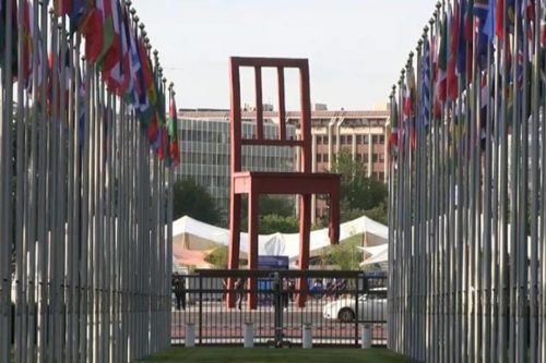 En la plaza frente al edificio de las Naciones Unidas en Ginebra, hay una gran silla con una pata rota, el artista quiso simbolizar la tensión entre la brutalidad y la dignidad, lo impar recuerda la necesidad de parar la violencia y la guerra.