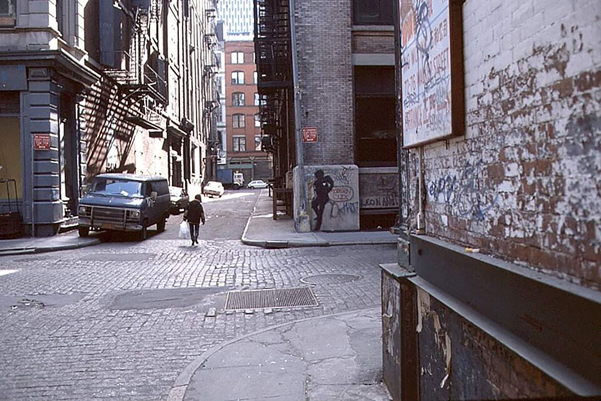Todo seguía su curso hasta que en el cruce de Walker Street y Cortlandt Alley, en pleno Downtown, Charly vio una sombra negra grafiteada con un corazoncito blanco, y junto a ella una leyenda: “Modern Clix”. Fue una revelación. Incorporar a la tapa un graffiti con esa onda postindustrial ya lo tenía en mente, de hecho ha había hecho varias pruebas con Nuevos Trapos. La sombría silueta, se supo mucho después, era obra del grafitero canadiense Richard Hambleton, que a comienzos de los 80 inundó con sus tétricos “shadowman” las paredes de esa New York oscura a la que Lou Reed rendiría homenaje años más tarde. Parecía que esa esquina inhóspita, entonces adoquinada, algo perdida en el alma del Lower East Side, lo estaba esperando. El fotógrafo Uberto Sagramoso, que se había unido a García para ensayar un posible arte de tapa, prendió la cámara y eternizó el instante.