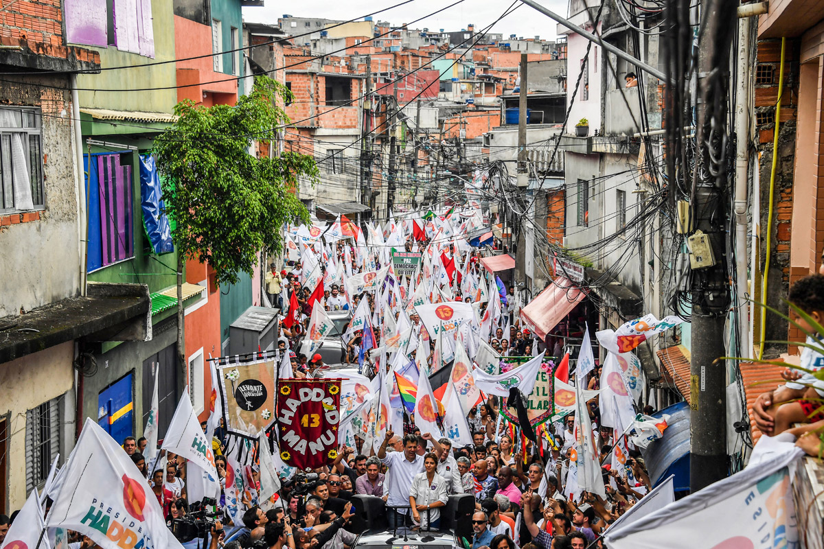 A su vez, el candidato del PT les habló a algunos sectores del capital internacional diciendo que no habrá privatizaciones pero sí lugar para las inversiones conjuntas por ejemplo con China. También agregó como parte de su programa que buscará «delegar algunas atribuciones de los estados a la administración central de la Unión» en temas como seguridad, educación y salud. La campaña que busca un cambio de la tendencia que marcan las encuestas hasta el momento también recibió apoyos internacionales como los de François Hollande, expresidente de la República de Francia, Bernie Sanders, senador de Estados Unidos, José Pepe Mujica, expresidente de Uruguay, Noam Chomsky, profesor emérito del Instituto de Tecnología de Massachusetts, Pablo Iglesias secretario general de Podemos, España, y el economista Thomas Piketty, quienes fueron algunos de los que firmaron un documento titulado «Manifiesto internacional contra el fascismo en Brasil». El resto del globo parece advertir sin miramientos, como cierra el documento, que «¡entre democracia y fascismo no puede haber neutralidad!». «