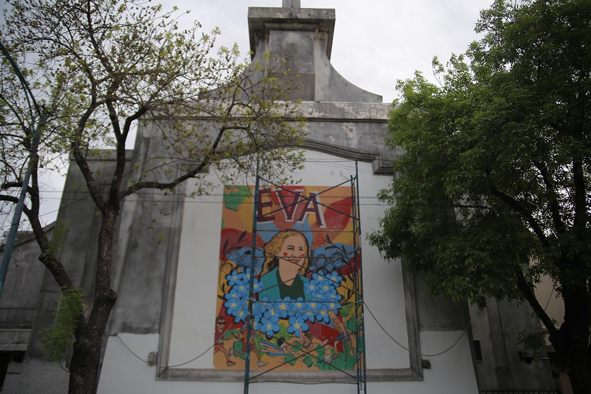 El grupo muralista que interviene la calle está compuesto por Mariano Junio, Gimena Morales, Cecilia Mirabeli y Martín Di Nápoli. El equipo trabajó en conjunto con la Agencia Nacional de Discapacidad para traducir en imágenes lo que significa la figura de Evita. “Es una tarde para compartir en familia, con música, juegos callejeros y poesía. Apuntamos a todos los públicos: los padres pueden escuchar música mientras las infancias juegan. Hacer un festival así en el predio de la ex Ciudad de los Niños es formar a nuestras infancias acerca de lo que es la historia argentina, ¿qué es este lugar? ¿dónde estamos? Tenemos que transmitirle a las nuevas generaciones la historia porque sin memoria no hay libertad”, cierra Iniesta.
