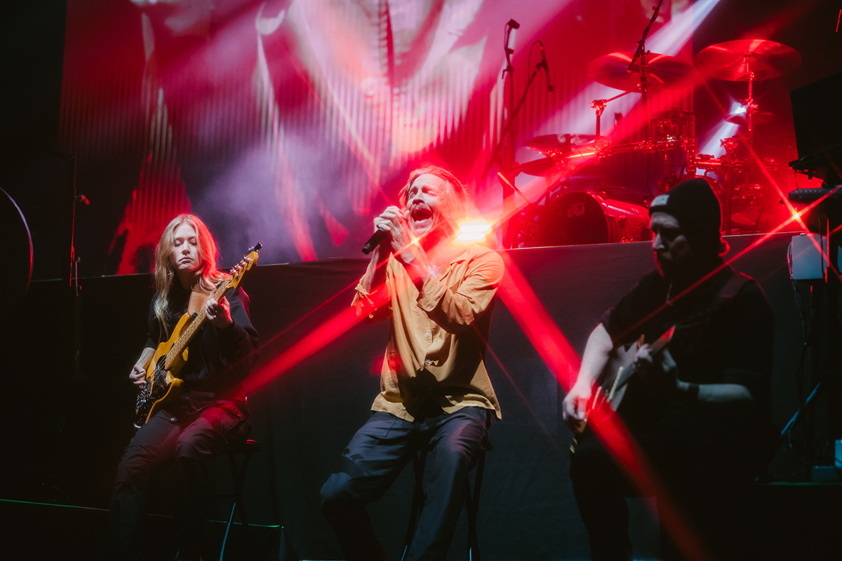 Todo se apaga y se disparan rayos verdes desde la mesa del DJ: es el momento de brillar Chris Kilmore y sus turntables en la intro de “Just a Phase”. Boyd sube a la plataforma de la batería con Pasillas y vocaliza desde lo alto mientras el campo entra en trance con imágenes psicodélicas. El ritmo desacelera en un momento reflexivo con “11am”, luego Nicole, Brandon y Mike se juntan en el centro del escenario para una hermosa versión acústica de “Blood on the Ground”. La melancolía grunge se profundiza con “Mexico”: voz y guitarra se sientan al borde del campo enmarcados por luces verde-azuladas en la oscuridad. Al corazón fundador de Incubus se le suma Kilmore en teclados. Mike le tira una púa mágica a algún alma afortunada.