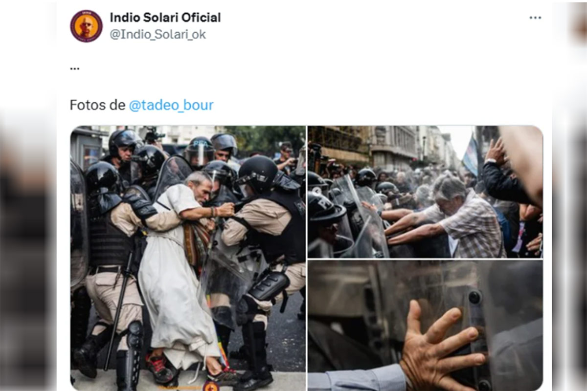 El Indio Solari volvió a pronunciarse públicamente contra la represión a las protestas sociales. Esta vez, lo hizo compartiendo en sus redes imágenes de la última movilización de jubilados frente al Congreso Nacional, en la que las fuerzas de seguridad no solo reprimieron, sino que también detuvieron al Padre Paco Olveira, referente del grupo Opción por los Pobres.