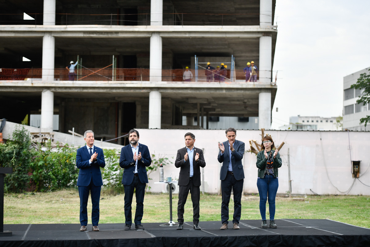 El acto tuvo lugar frente a la Torre de Innovación Científico-Académica (TICA), una de las obras reactivadas por el Gobierno provincial con una inversión de $3.685 millones, luego de haber sido paralizada por Nación. Kicillof estuvo acompañado por el ministro de Infraestructura y Servicios Públicos, Gabriel Katopodis; la ministra de Hábitat y Desarrollo Urbano, Silvina Batakis; el intendente local, Fernando Moreira; y el rector de la casa de estudios, Carlos Greco.