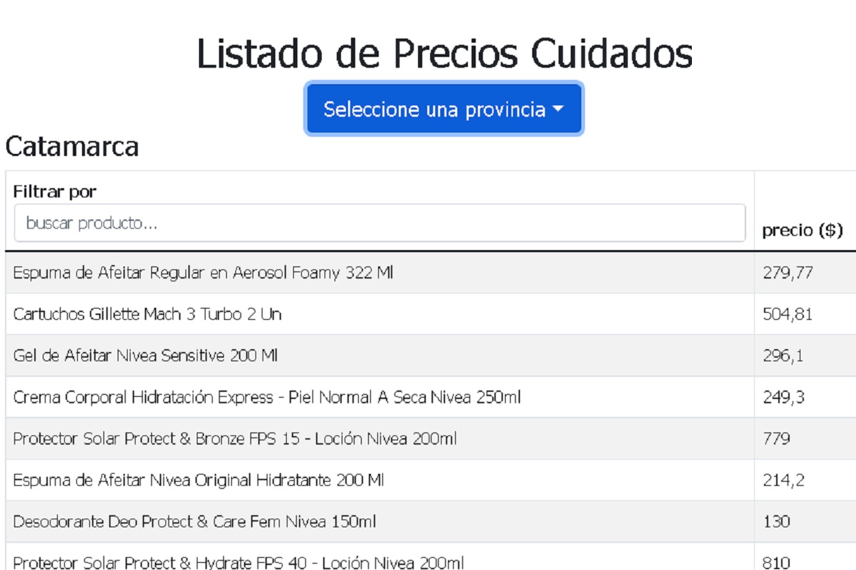 La aplicación es muy sencilla: primer paso, seleccionar provincia; segundo paso, colocar el producto que le interesa al usuario. El resultado está en un microsegundo.