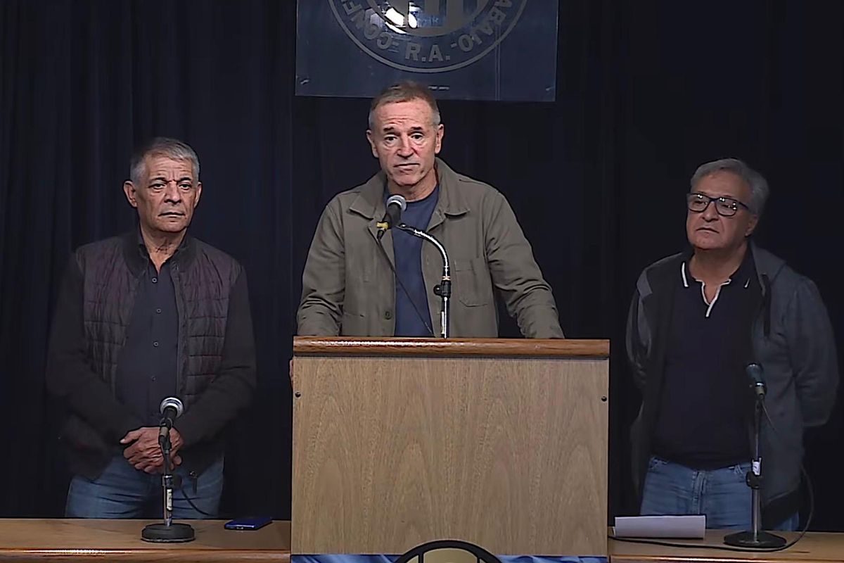 El dirigente en todo momento estuvo secundado por los otros secretarios generales de la central obrera, el dirigente del vidrio Cristian Jerónimo y el camionero Octavio Argüello.