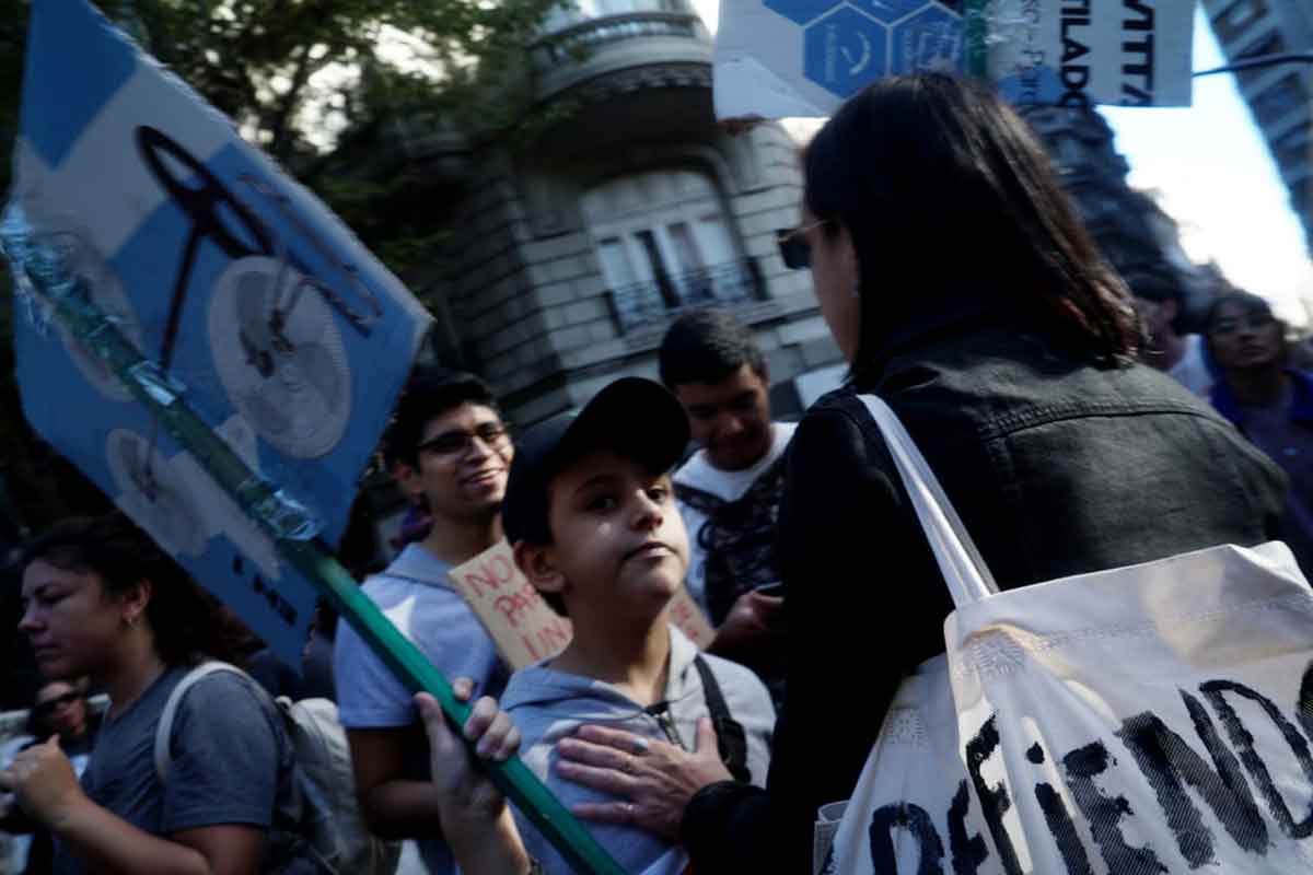 C., de ocho años y con una campera de Frida Kahlo, llegó a la marcha con su mamá. Juntas marcharon en la columna de su escuela, una pública de Balvanera. Ella se sumó a la consigna de alzar un libro para acompañar el reclamo: eligió uno de Mafalda. “Estoy marchando por la educación pública. Porque si sólo hay escuelas privadas, hay gente que no va a poder ir. Si es pública, puede ir más gente”, razonó.
