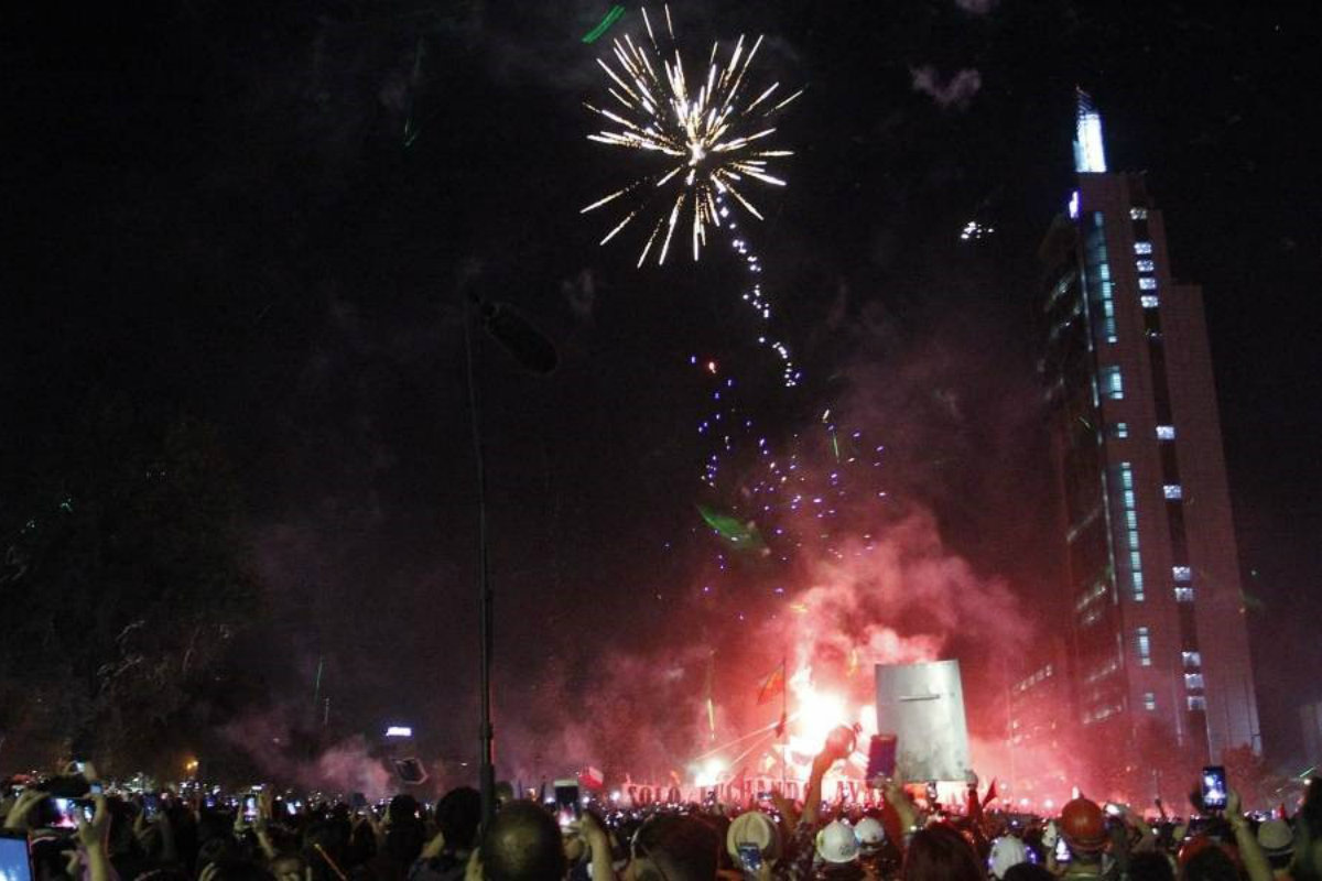 Se cantaron en la madrugada cánticos que fueron símbolos durante la crisis: «El pueblo unido jamás será vencido», «Chile despertó» o «El baile de los que sobran», de la banda local Los Prisioneros.