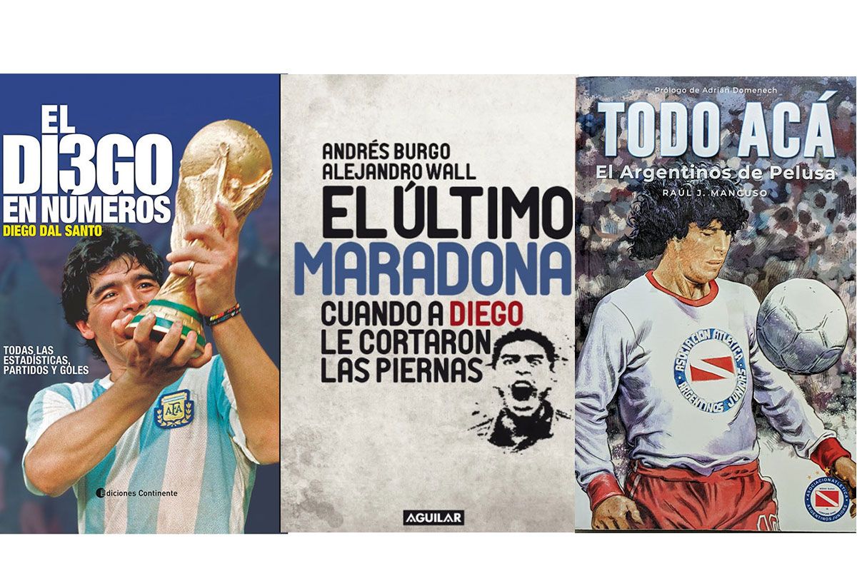 De sus años en Argentinos Juniors se sucedieron publicaron Dios es Argentinos, de Hernán Zyseskind (2021), Maradona, el primer Diego de Argentinos, de Maxi Kronenberg (2002), y Todo acá: el Argentinos de Pelusa, de Raúl Mancuso (2022). De su paso por Boca se sumaron Lo quería Barcelona, lo quería River Plei, de Eduardo Bolaños y Sergio Barbieri (2020), y Diego y Boca (2025), de Luciano Fontenla. De Newell’s se encargaron Iván Orbuch y Juan Pablo Susel: Maradona en rojo y negro. Sebastián Chitadini aportó Los Maradona que no fueron, un recorrido por los pases frustrados a clubes en los que estuvo a punto de jugar.