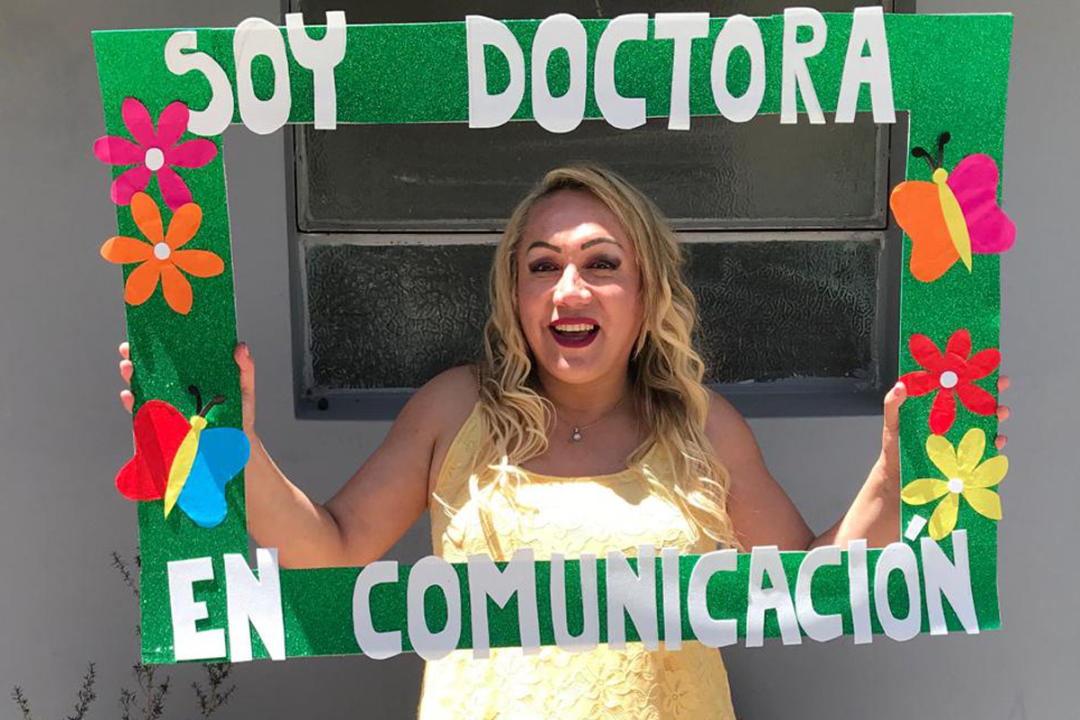 El encuentro fue por Zoom; su amiga Claudia Santos, la primera que tuvo cuando apenas llegó a la Argentina desde su Perú natal hace veinte años, tocó el timbre a las 8 de la mañana para peinarla y prepararla. Además del jurado docente, la acompañaron amigas, familiares, y compañeras de militancia emocionadas por ser parte de un día histórico. Fuera de la pantalla, su mamá le sostenía la mano como hace 16 años, cuando caminaron juntas hacia su primer día de clases en la Facultad de Periodismo y Comunicación Social de la Universidad Nacional de La Plata en los años previos a la Ley de Identidad de Género.
