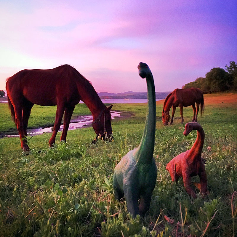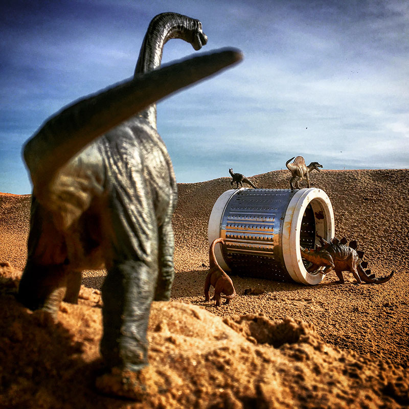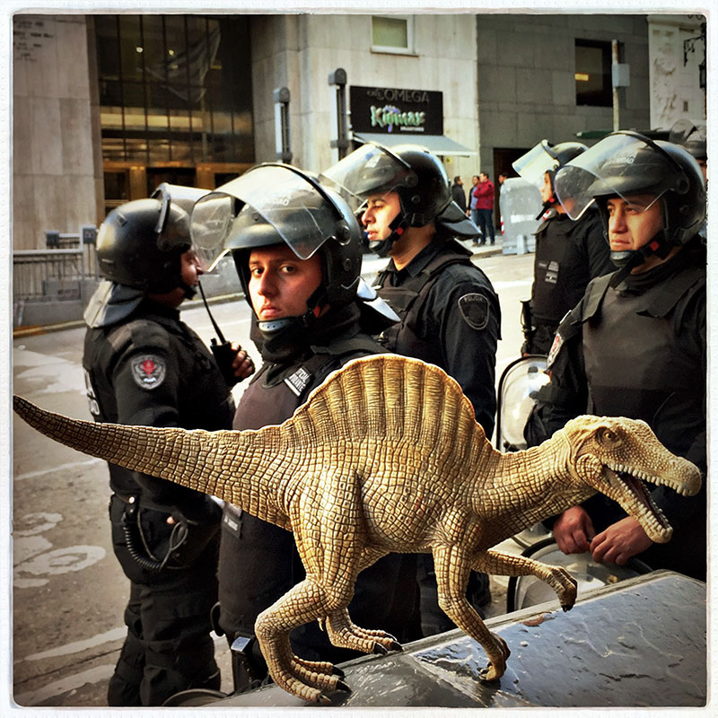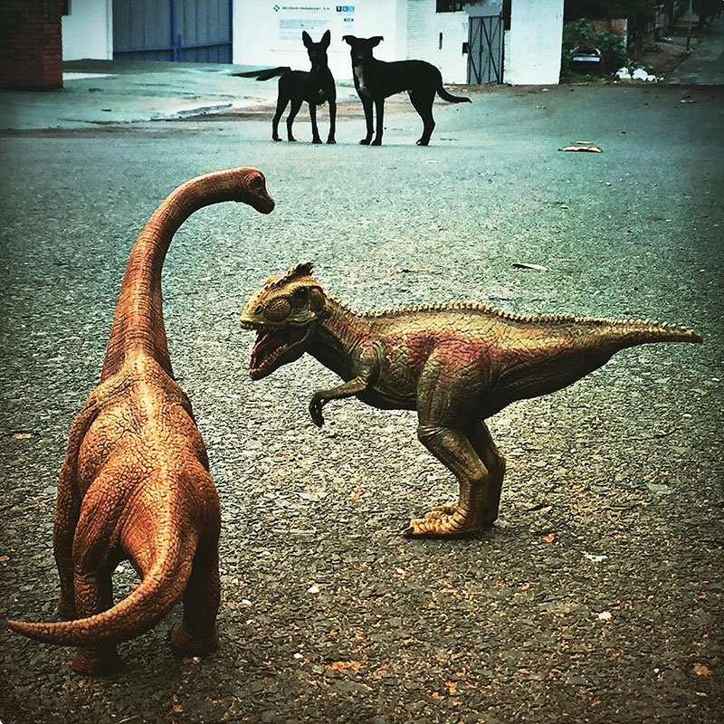 Los libros son un relato fotográfico de unos dinosaurios que recorren el mundo y hacen cuestionamientos acerca de todo lo que observan a su paso. Las fotos fueron hechas en diez países de Sudamérica, el Caribe y Alemania y los textos han sido traducidos a siete idiomas (Castellano, Guaraní, Ingles, Francés, Japonés, Portugués y Chino).