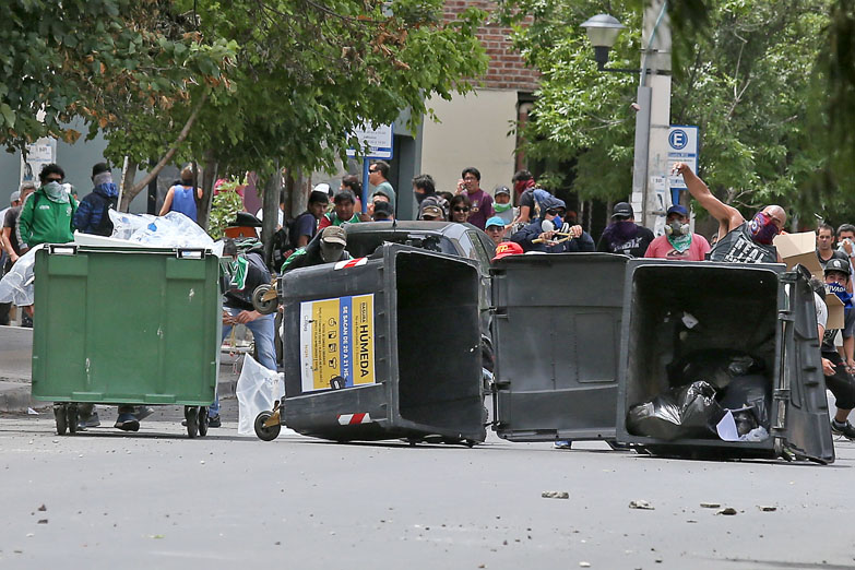 Los incidentes, que se suman a los registrados ayer en la provincia, comenzaron este mediodía cuando estatales y otras organizaciones gremiales y sociales se movilizaban en coincidencia con la marcha convocada en la ciudad de Buenos Aires al Congreso nacional en contra de la reforma previsional.