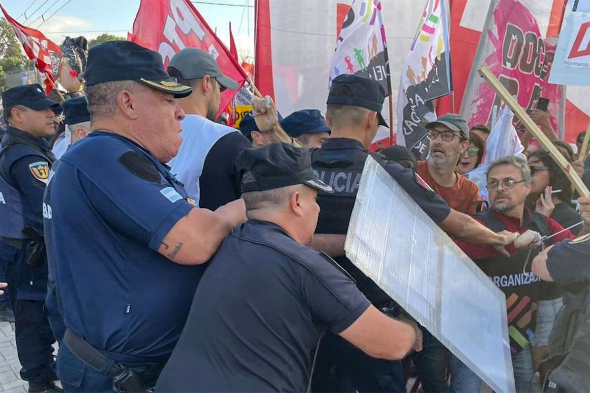 De este modo, la concentración de la seccional Capital del sindicato docente Unión de Educadores de la Provincia de Córdoba (UEPC) en el Puente Centenario, sobre el río Suquía, comenzó a desarrollarse en un contexto de vallas, fuerte cordón policial y tensión en el aire. Una tensión que se enervó cuando, denunció el secretario general de UEPC Capital, “la policía bajó a la calle y comenzó a reprimir, con complicidad del gobierno provincial. Fue absolutamente desmedido”.