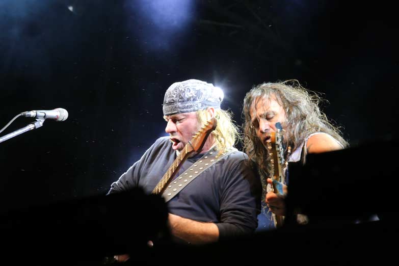 El contraste entre el escenario y el público llama la atención. Abajo hay un mar de 40 mil personas a punto de ebullición. Arriba: solo la guitarra y la voz del Chizzo, el bajo del maratonista Tete y la potente pegada del Tanque a los parches, más los aportes en los vientos de Manu y Las cucarachas de bronce.