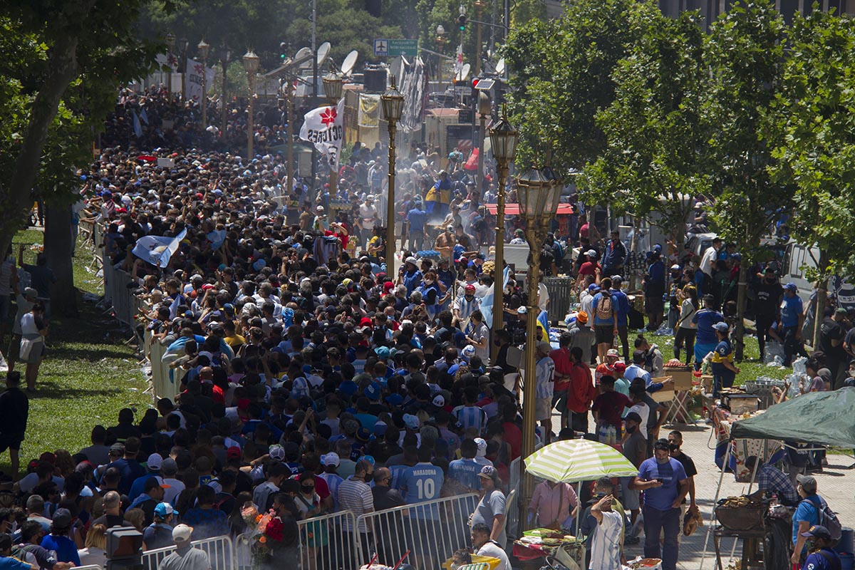 El ingreso del público, en el medio de un operativo sanitario y de seguridad, comenzó a realizarse por Avenida de Mayo y 9 de Julio, entrando a la Casa Rosada por Balcarce 50 y en el inicio se produjeron algunos incidentes entre los fanáticos de Maradona y efectivos policiales, que incluyeron corridas y agresiones con piedras.