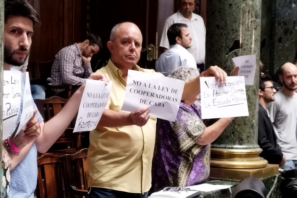 Sin debate ni consenso de la comunidad educativa, el oficialismo porteño aprobó una Ley de Cooperadoras que, según las familias que las integran, está lejos de los reclamos históricos y dista mucho de las verdaderas necesidades por las que atraviesan. Al contrario: Afirman que la nueva normativa es más restrictiva que las resoluciones firmadas por la dictadura militar que, hasta este jueves, regulaban el funcionamiento de las asociaciones Cooperadoras. Luego de que la comisión de educación de la legislatura estuviera cerrada por cuatro meses, éste proyecto tuvo una sola instancia de debate (la semana pasada), y apenas dos encuentros con asesores; y fue redactado en base a preguntas enviadas a las familias que integran las cooperadoras mediante mensajes de WhatsApp. El único sector que acompañó la Ley aprobada está tarde, por 37 votos del oficialismo porteño, fue Padres Organizados, agrupación que defiende cada una de las medidas que impone la cartera que conduce Soledad Acuña.