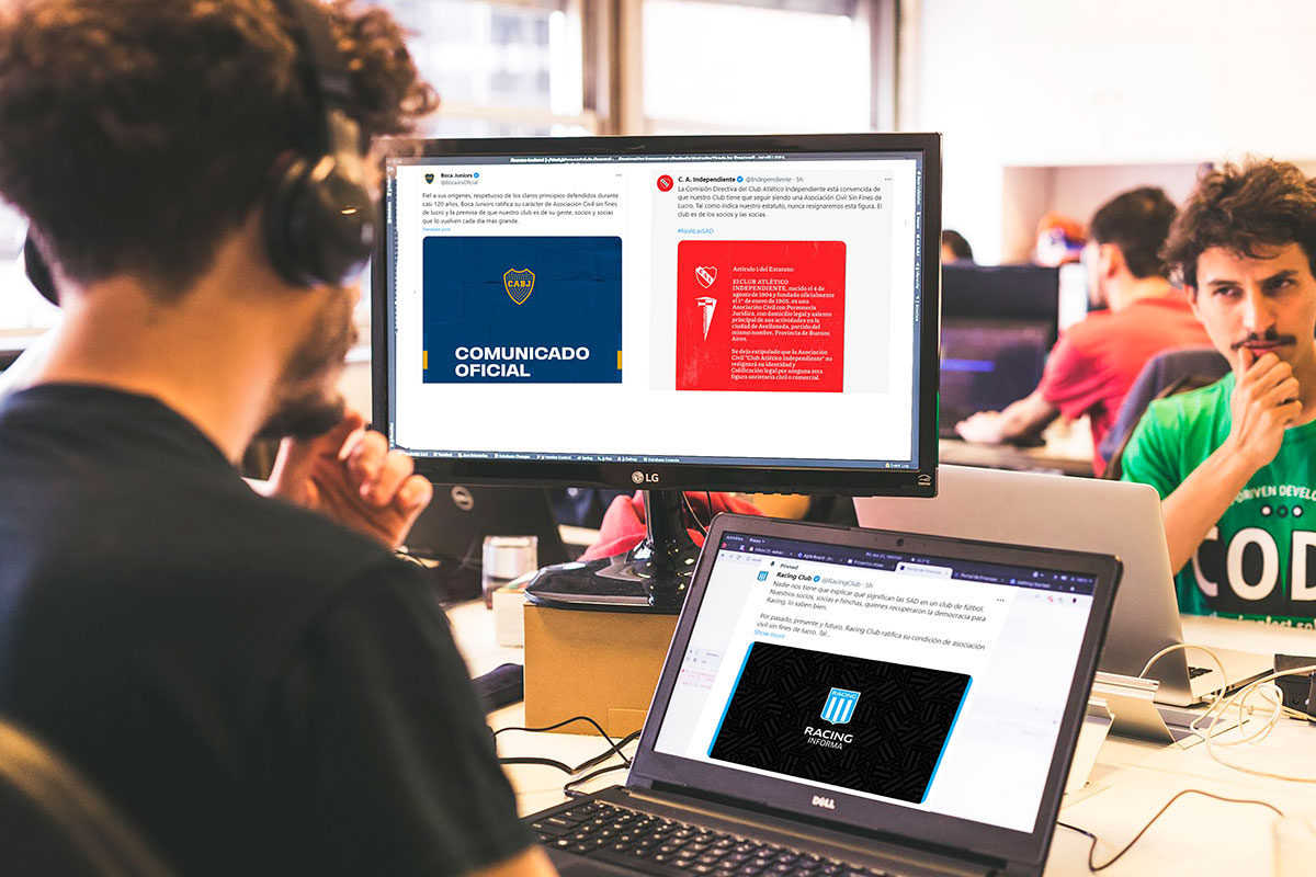 De hecho, Etchart se había topado con ese video de Milei –en el que le cuestionaba a Fantino «¿quién financia los clubes de barrio?»– en ese grupo hasta entonces minúsculo, con cinco integrantes. Faltaba poco para que el fútbol argentino se pronunciara en contra de un candidato, como nunca antes, en la previa a unas elecciones presidenciales.