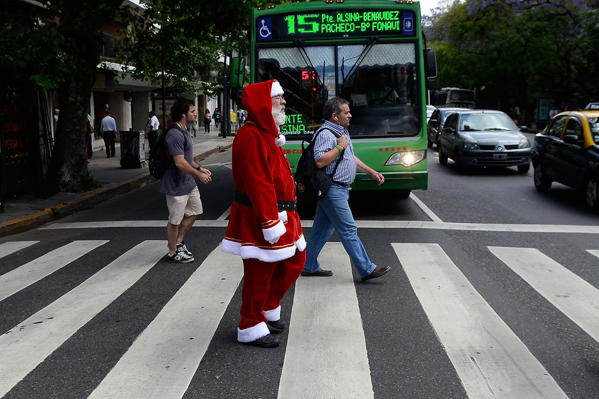 «¡¡¡Tres pares por 3000 pesos, lleve las medias!!!», vocea César, un mantero arrimado desde el Merlo profundo. Le mete 12 horas de corrido al trabajo para llevarse unos pesitos a su casa: «Y con suerte paro la olla». Su vecina Claudia vende gorritos de Papá Noel a 500 devaluados pesos: «Viene triste la Navidad, como la del 2001 o la de la época de Alfonsín. Tengo un plan y no me alcanza, ¿quién vive con 70 mil pesos? Acá sumo un extra. Ni sueño con regalos. Por suerte hoy no me toca cocinar, me aguanta mi cuñada».