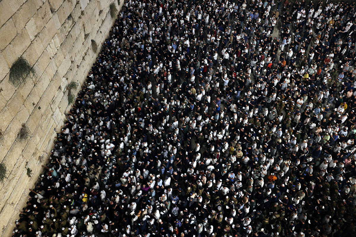 Judios religiosos durante el dia de Yom Kippur, en Jerusalem.