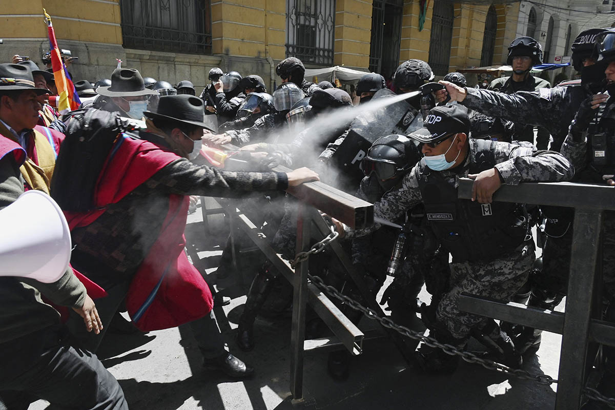 Grupos indígenas protestan en La Paz en reclamo de demandas incumplidas por parte del gobierno.