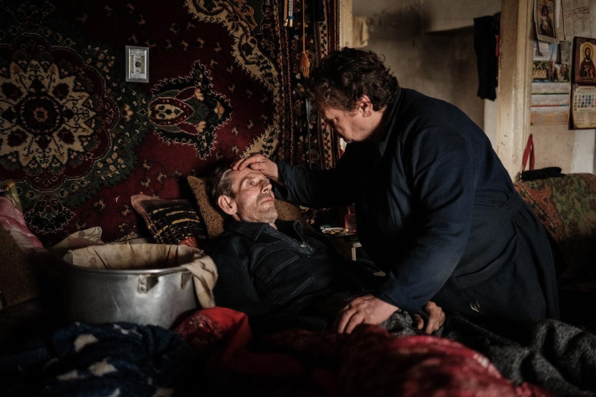 Un hombre enfermo de cáncer es atendido por su esposa en la región de Bajmut, en Ucrania.