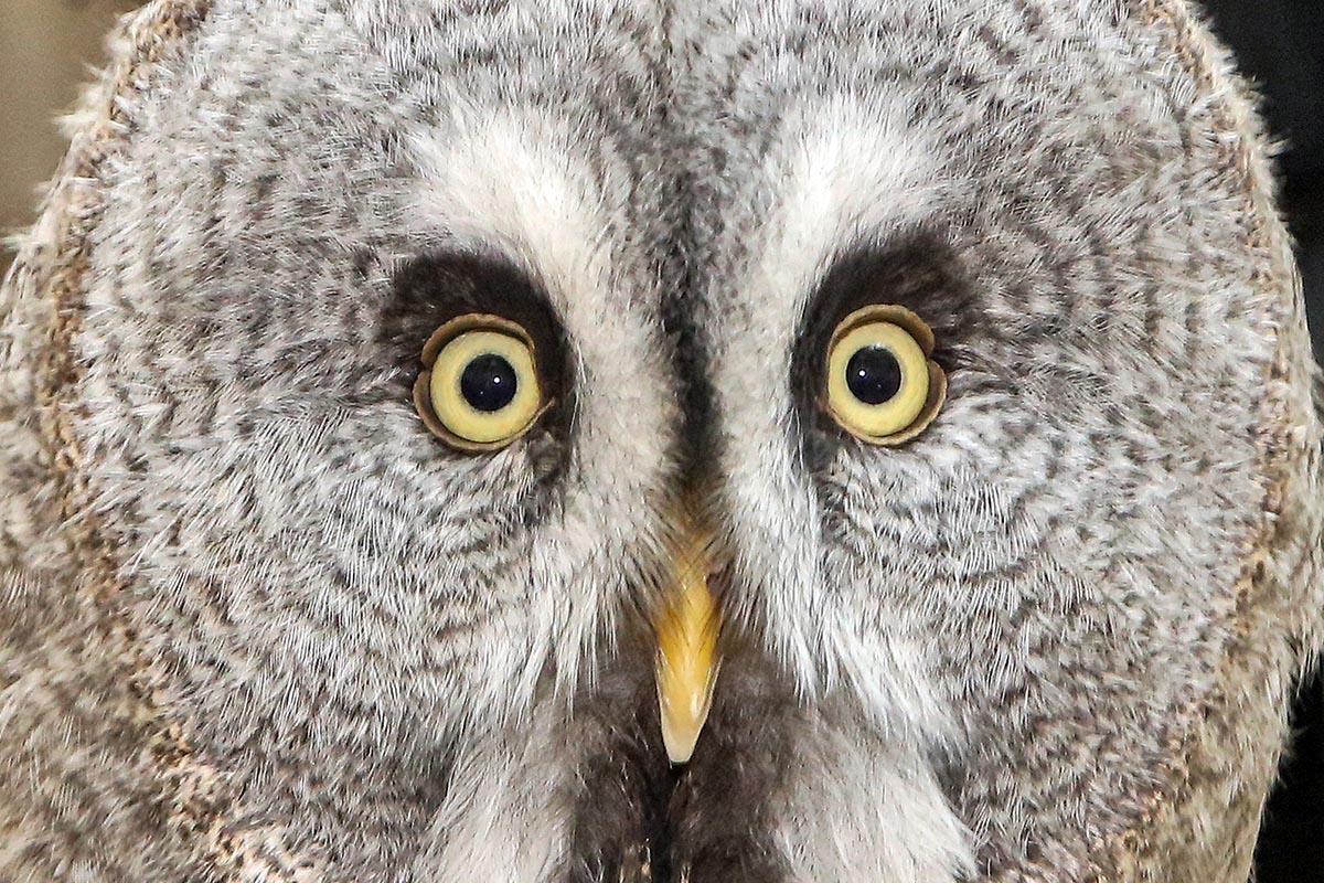 Un buho de los Urales durante una exibición de pájaros en la Universidad de Kuwait.