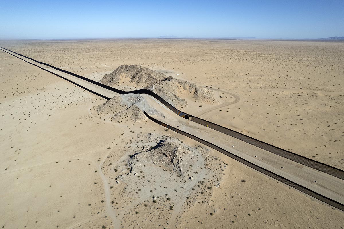 Vista aérea del muro que separa al frontera de Estados Unidos y México en la zona de San Luis Rio Colorado.