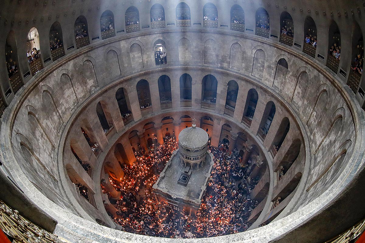 Vista aérea de una iglesia cristiana ortodoxa en Jerusalem.
